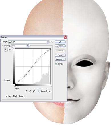 سپس به مسیر Image>Adjusment>Curves برید و مثل عکس زیر دسته ها رو بالا و پایین کنید تا نتیجش مثل زیر بشه